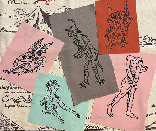 “Imp” Woodcut Screen Printed Patch