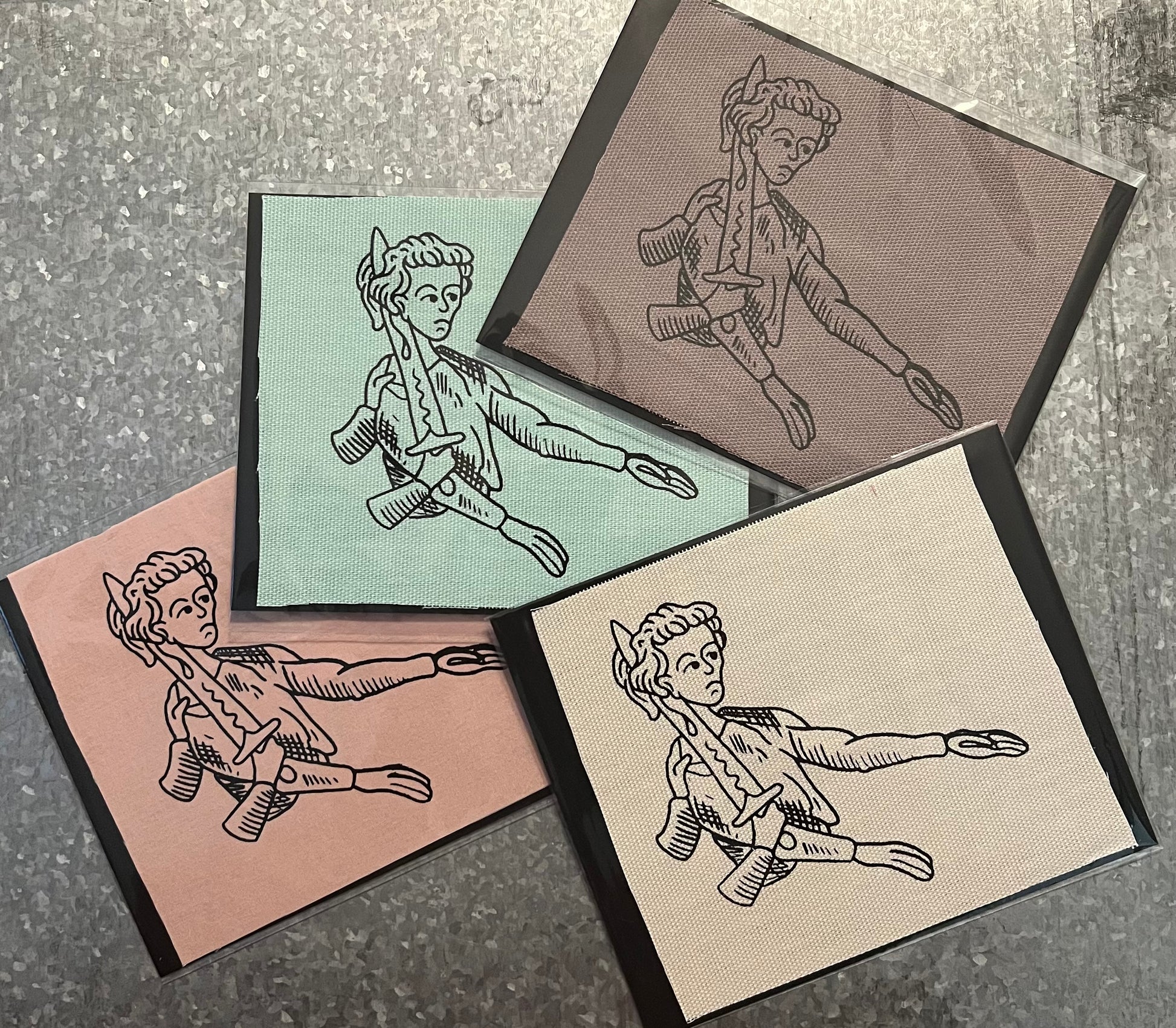 Hand screen printed linocut patch
